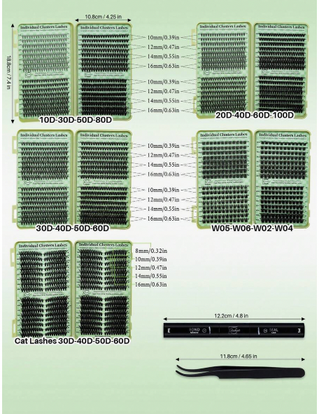 Cluster Lashes Book Kit, 640PCS/384PCS Lash Clusters D Curl Mixed 10-16mm Mega Volume Individual Lashes Wispy Lashes, 4 Styles In One Tray, Kit With BOND&SEAL And Lash Applicator For DIY At Home, Beginner Friendly
